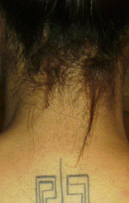 A few weeks back, I met Kristina, after spotting the top of her tattoo peeking out from under her shirt and reaching toward her neck.I was intrigued and asked her about it. She revealed it to be a much larger piece than I initially observed and explained that it is a Hopi symbol of mother-daughter unity that accompanies her on her spiritual journey through life.
